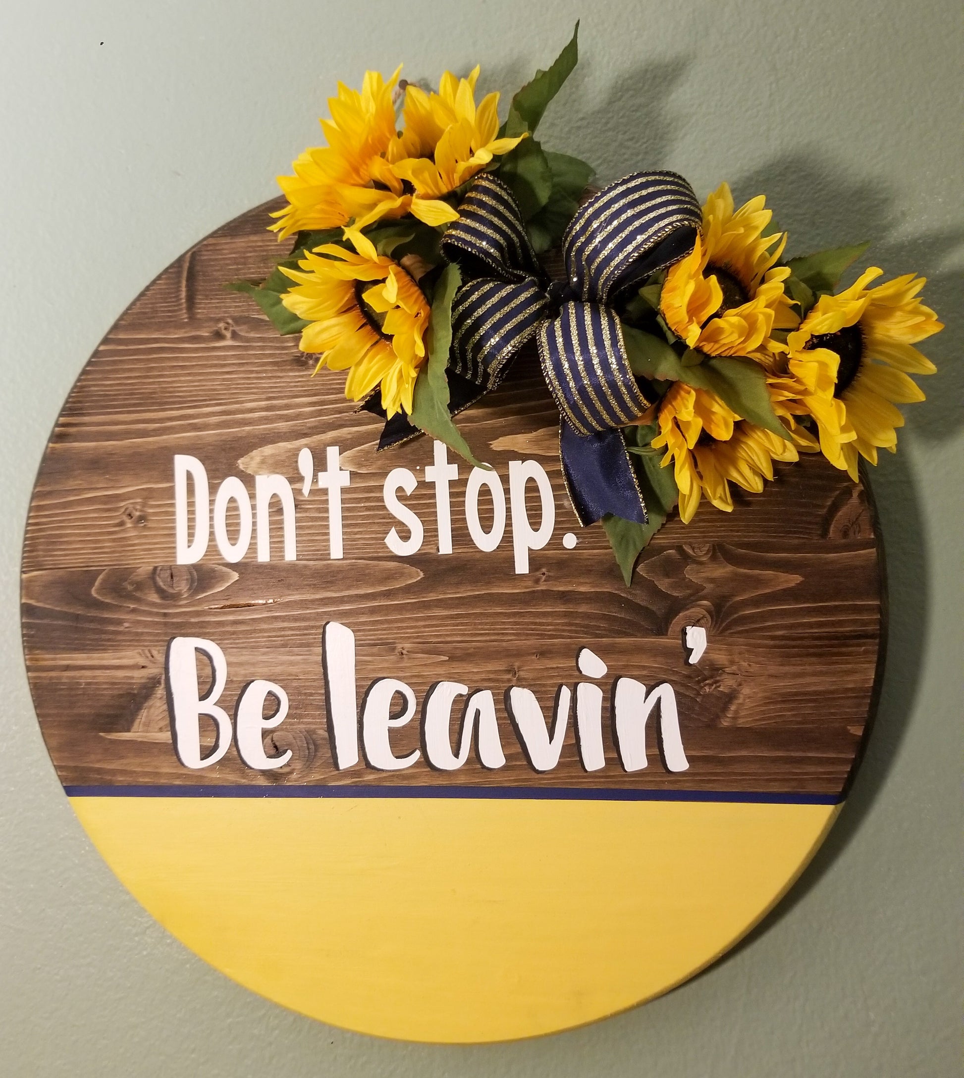 Welcome your guests with a touch of humor with our Be Leaving wood door decor welcome sign. Made with quality materials, this sign will surely make any visitor smile. Perfect for any home, this funny sign is an excellent conversation starter.