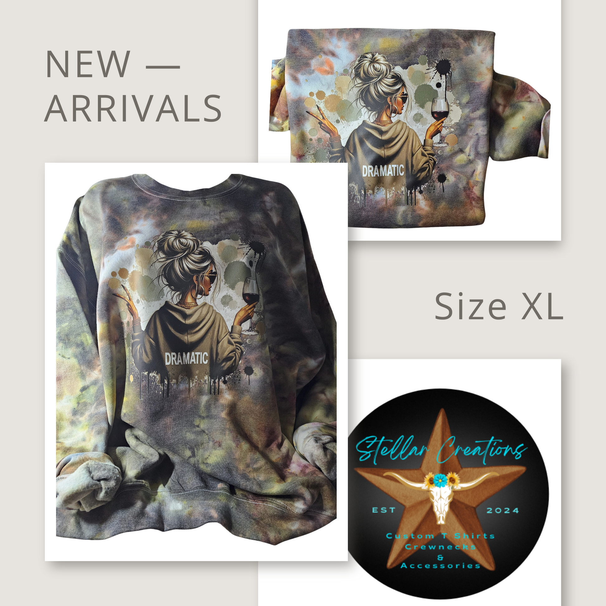 Experience ultimate style and comfort with DRAMA tie dye sweatshirt. Crafted in size XL, this unique sweatshirt is perfect for making a statement with its trendy tie dye design. Made for fashion-forward individuals who value individuality and comfort.