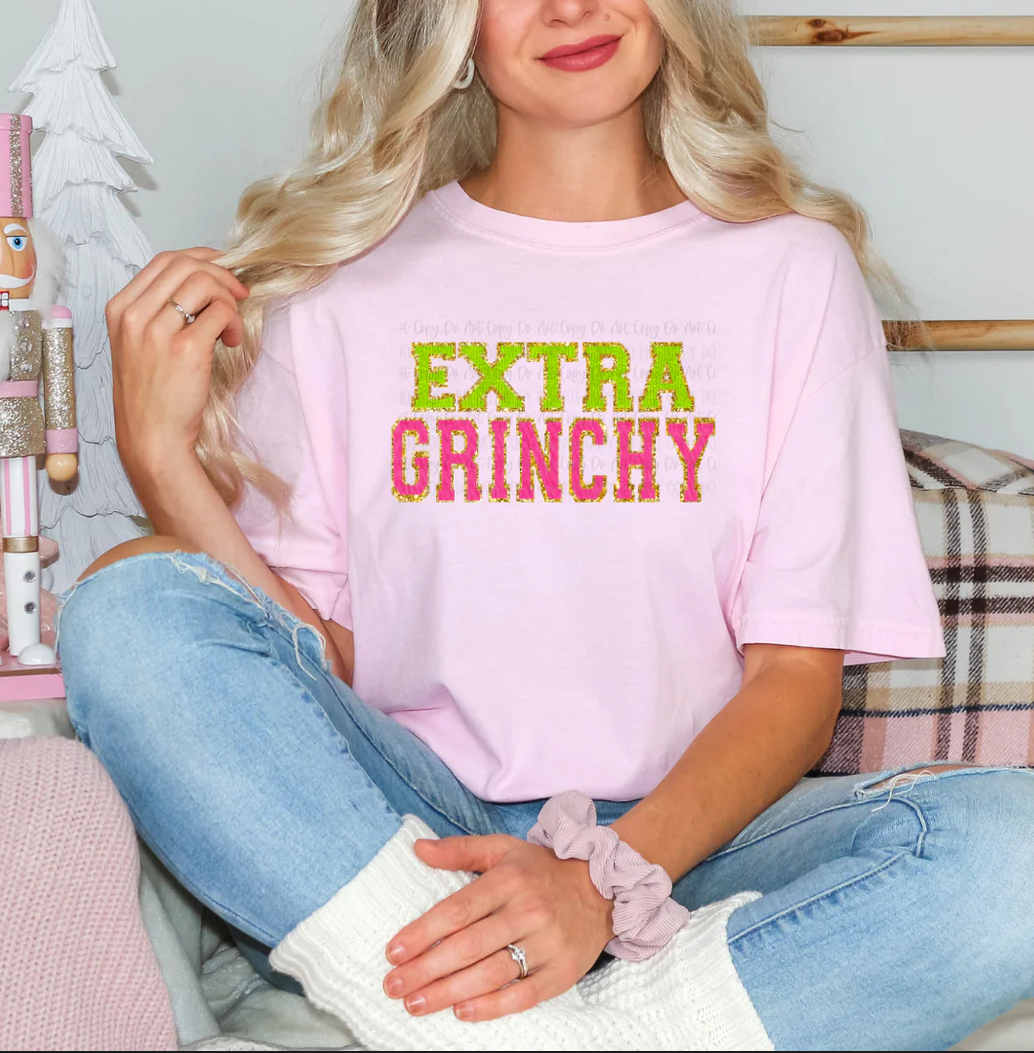 Introducing EXTRA GRINCHY TEE: the perfect choice for cozy and festive holiday attire. Made with comfort in mind, this tee is sure to keep you comfy while adding a touch of holiday spirit to your wardrobe. Stay stylish and comfortable with EXTRA GRINCHY.