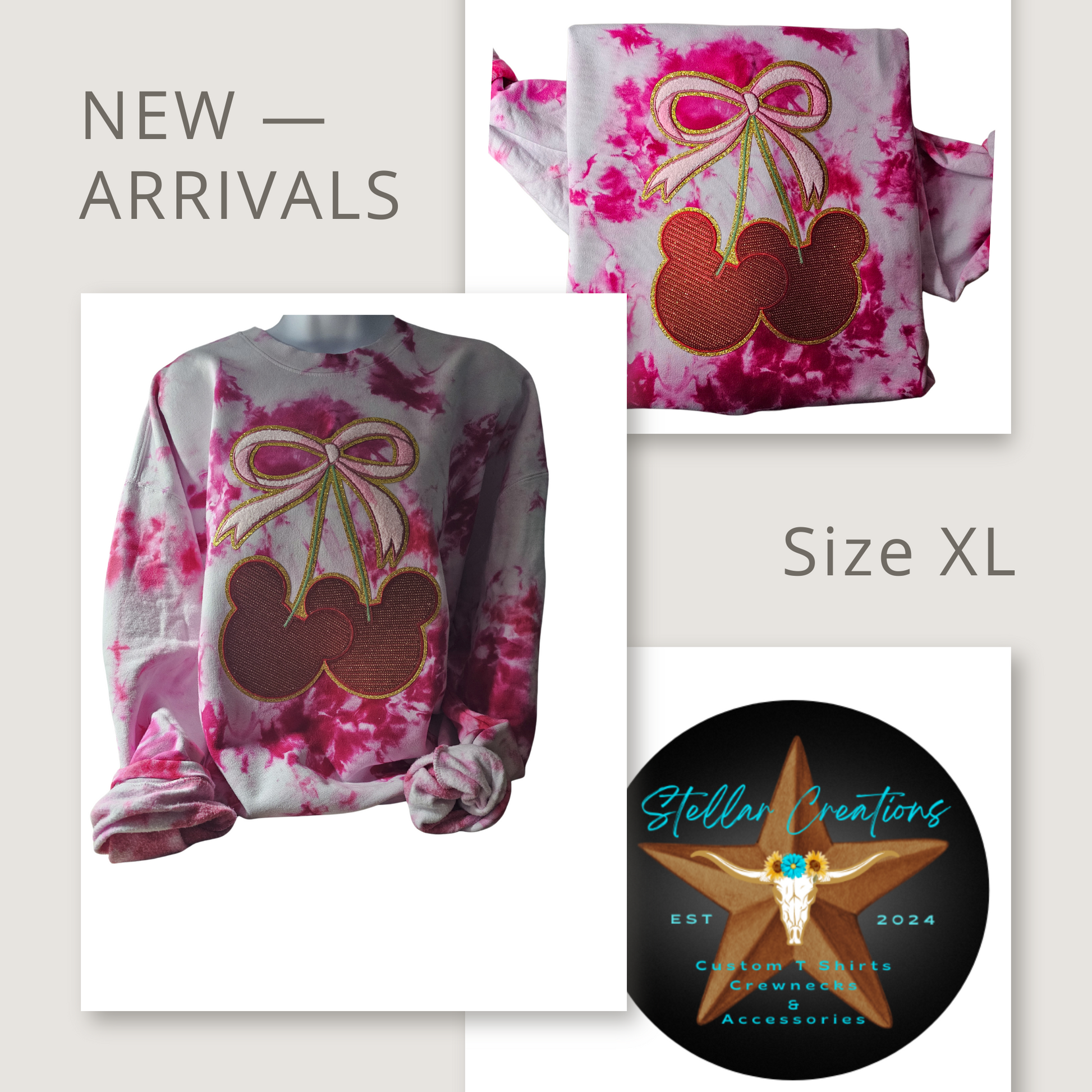 This hot pink tie dyed sweatshirt features a playful sequin patch of the iconic mouse ears. Stay stylish and comfortable while showing your love for a timeless character. Perfect for any Disney fan and a fun addition to any wardrobe.