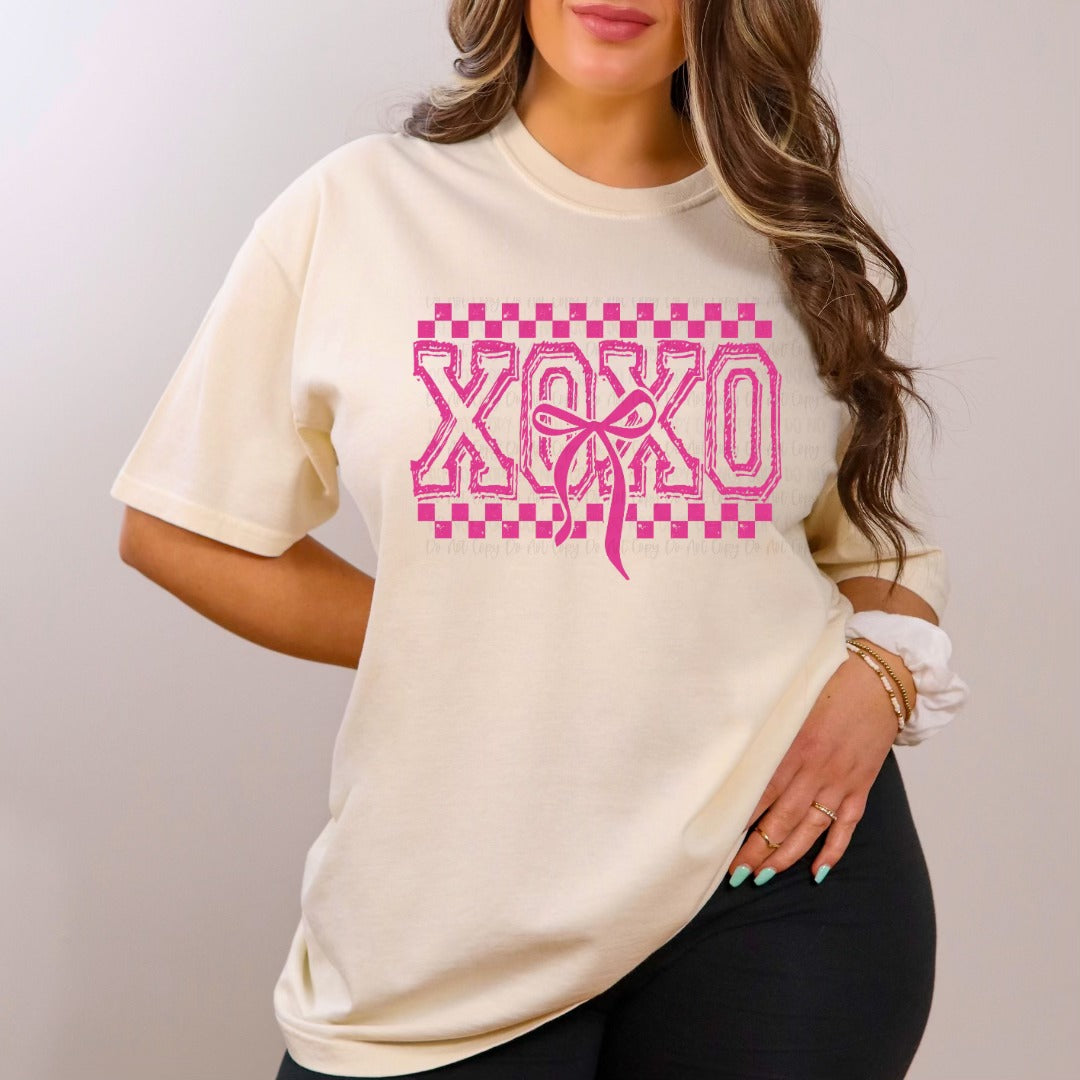 Stand out this Valentine's Day with the XOXO CHECKERED tee! Featuring a bold design, this sweatshirt is guaranteed to turn heads. Made with high-quality materials, it's comfortable and sure to impress. Perfect for a romantic date or a casual day out. Get ready to make a statement with XOXO CHECKERED.